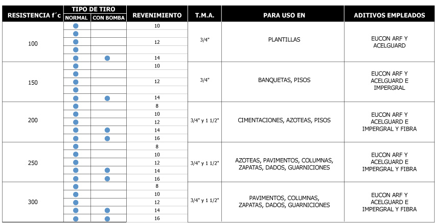 CONCRETOS Ofrecemos concreto premezclado con grava ¾ y 1 ½, tiros directos y bombeables, en todas sus resistencias, producimos mezclas especiales.